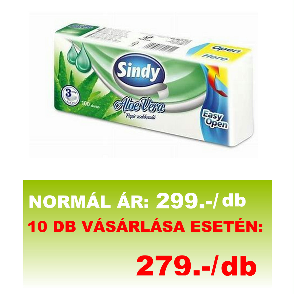 Sindy Aloe vera papírzsebkendő 3 rétegű 100 db/csomag