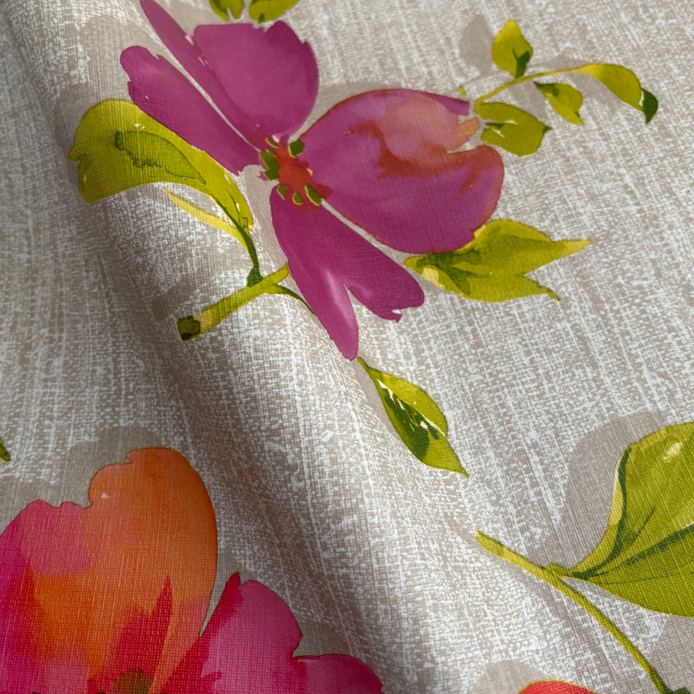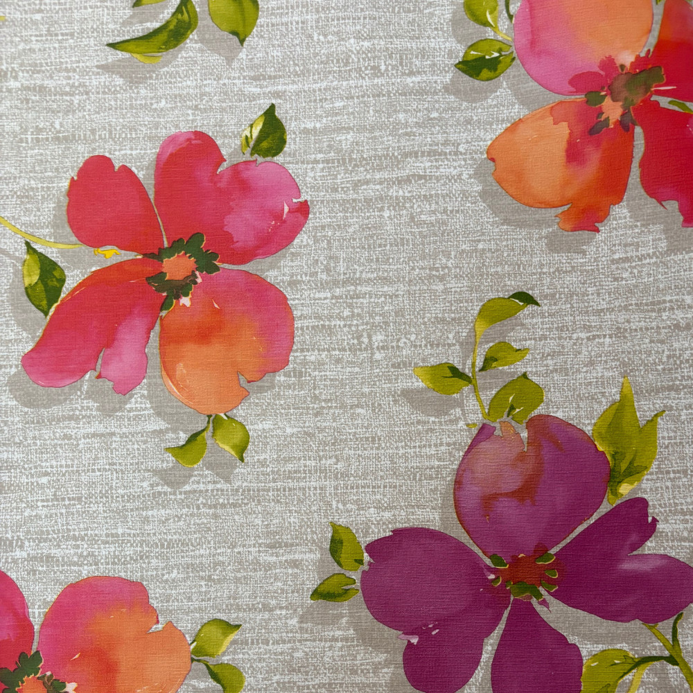 Viaszos vászon terítő 280 - Szürke alapon lila és rózsaszín virágok